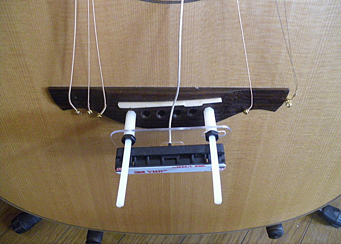 さて、昨日のピックアップ取り付けの続報である。慣れない作業と格闘の末ようやくピックアップを取り付けたまでは良かったが、いざアンプに繋いで音出しをしてみると、これがかなり期待はずれ。音のバランスが極端に悪く、低音のみがバカでかい。しかもその音はボヨ〜ンって、「お前はいったい何の音を拾ってるんだい!」ってツッコミを入れたくなるほど。高音はまだしも中音は篭り気味で、低音はボヨ〜ン。こんなハズでは…と思いつつ、あらためてネット情報を探ってみると、私と同じようにiBEAMを取り付けて異様な低音に悩まされた方も少なからずいるようで、とある方の記事を読んだら「反対に取り付けたらバッチリ解消できて良くなった」という記述が。文面からだけでは「反対に」の意味がわからなかったが、ピックアップを上下さかさまに付けるハズもなく、さすれば取り付けジグを反対に使う…つまり、ピックアップを説明書通りサドルの真下に付けるのではなく、ブリッジピンの後ろ側に設置する…という意味にほかならない。ダメ元だからね。この記述に淡い期待を寄せて、さっそくやってみた。そしたら…おっ、おおおおおおお! すっげー良い音。ピエゾ・ピックアップは取り付ける位置によって音が変わることは知っていたけれど、ここまで大きく変わるとは。低音から高音までバランスも良く、そして音も、ギターの生音や空気感も感じられる、私がほぼ理想と思う音である。言葉で表現するのは難しいけれど、ズンッというかビンッというか、弦を弾いたときの、あのギターの生音までもしっかり再現してくれる。これはさすがに、金属弦の振動と磁石によって信号を発生させる、いわゆるマグネットのピックアップでは絶対出せない音であろう。もちろんその分、ミスタッチの音までしっかり拾ってくれる…という弱点もあるけれど、でも、まさにこれこそ私が望んだ理想の音。うれしくて今宵は眠れそうにない…というか、ピックアップの取り付けに時間を要した分だけ仕事が詰まっちゃって、明日提出の約束の仕事もまだ手つかずの状態。なので、とても寝てなんかいられない…というのが本当のところだけどね。なはは。
