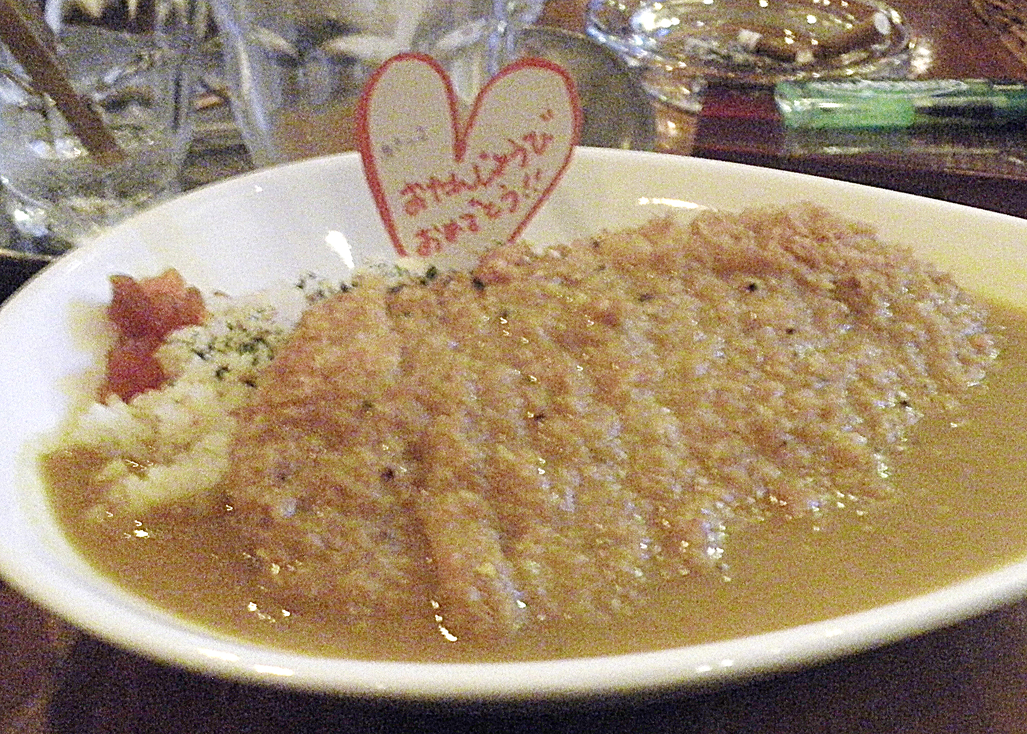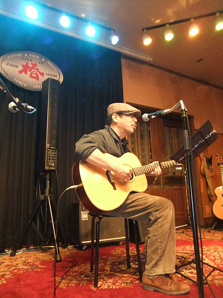 昨夜は、最近の私の楽しみのひとつである、クックハウス椿の「フォークな夜」。いやぁ楽しかった。心配していた愛器NT-203に新しく取り付けたピックアップL.R.BAGGSのiBEAMactiveの音響もバッチリOK。ノープレブレムであった。悩んだけど、やっぱりコレにして良かった。で、肝心のライブは、常連のMCしま〜さんは「やっとさん」と「すいか君」を従えてのバンド編成だし、ヴァイオリンの先生とギターによるデュオがあったりして、いつもより全体的に音楽性が高い雰囲気。その他のみんなも完成度がきわめて高いし。あら困ったぞ。今回、私が予定していた曲は、ギターテクなどの音楽性よりも歌詞で聴かせる「まりちゃんズ」の曲と元まりちゃんズの「藤岡藤巻」の曲の2曲。1曲目に予定していた「まりちゃんズ」の曲は、さすがに昨夜のライブのテイストと違いすぎるので急遽カット。この歳でいまさら恥も外聞もないけれど、でも、できればスベるのは避けたい。で、こういうときのピンチヒッターとして役立つのがCMソング。多くの人が耳にしていて、かつイヤミもないのでスベリが少ない。TVでは「スベらない話」ってのがあるけど、これはいわゆる「スベらない曲」ってわけ。今回は私が大好きなサントリーオールドのCMソング「人間みな兄弟〜夜が来る」でなんとか乗り切ったけれど、いざというときのために、もう2〜3曲CMソングをマスターしておこうかな。それにしても和気あいあい。いつもながら「フォークな夜」は楽しい。カツカレーをオーダーしたら、私の誕生日を祝うメッセージカードがさりげなく添えられていて。こういうサプライズってグッって来ちゃう。細やかな心遣いが嬉しいかぎり。私ゃ「椿」も、マスターもママさんも、ここに集う人たちも、みんな大好き。さてさて次回は5月10日とのこと。次は何を弾こうかな。そんな構想を練るのもまた、ひとつの楽しみだったりして。