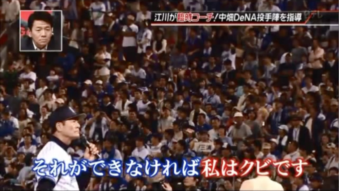 第二の初音ミクとも称された北乃カムイが、その活動に終止符を打った。理由は、活動開始の際「TwitterおよびFacebookのフォロワー3万人を半年で集める」と公約を掲げ、公約に至らなかった場合には即引退、そして所属事務所の廃業も宣言していたが、その公約の数値に達しなかったから…とのこと。私が北乃カムイの存在を知ったのは、この廃業のニュースを見てからで、いまさらながらに「じつに惜しい」と思うが致し方ない。公約は公約。いかにも潔くて心地よい。かと思いきや、世の中には反対に、潔くない者もいるものである。それは、かつてむかし捕鯨会社を親会社とした某在京球団の現監督。「来季はファンの皆さん、一緒にクライマックスで戦いましょう。それができなければ“私はクビ”です。それを“お約束して”御礼の言葉にかえます。」これは2012年10月8日の横浜スタジアム最終戦終了後の挨拶で、彼が声高らかに宣言した言葉である。この“約束”に私はどれだけ勇気づけられたことか。5年連続ダントツ最下位のチームが、もし3位以内に入ってCS進出することになればウレシイし、仮にそうならなくても、なかば失業者雇用対策みたいな形で採用した監督が自ら身を引くことを公約してくれたから…である。私が彼を嫌う理由を述べると誹謗中傷のようになってしまうのでここでは割愛するが、この男気のある宣言には私もさすがに感服した。ところが、ところが、ところが…である。今季クライマックス進出を果たせなかったにもかかわらず、な、な、なんと、約束に反して監督の契約を再び結んでしまったのだ。れれれれれ〜。あのファンとの“約束”は、いったいどうなってしまったのだろう。公約を守れぬ男だから参議院選挙に落選したのもうなずけるけれど、でも、自らの公約を無にするような安っぽい男に、はたして選手がついていけるのだろうか。男には潔さも大事だと、私は思うんだけどね。とくに、プロ野球の監督などといった組織を統率する立場の人間にはさ。