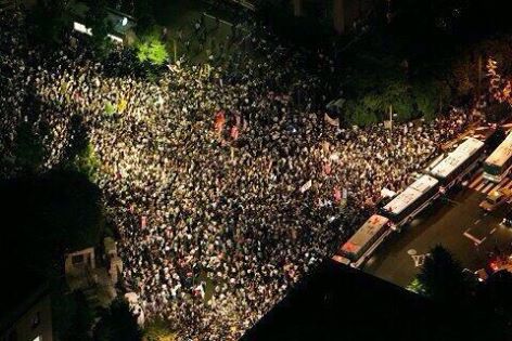 官邸前で抗議デモ 集団的自衛権の閣議決定反対で深夜まで